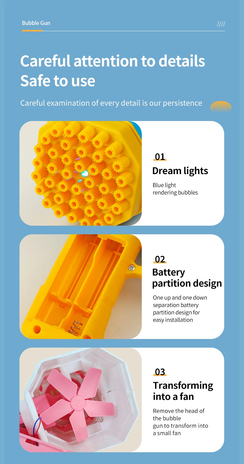 ✔ Automatic Electric Blaster – No manual blowing! Just press the button, and watch the bubbles fly.