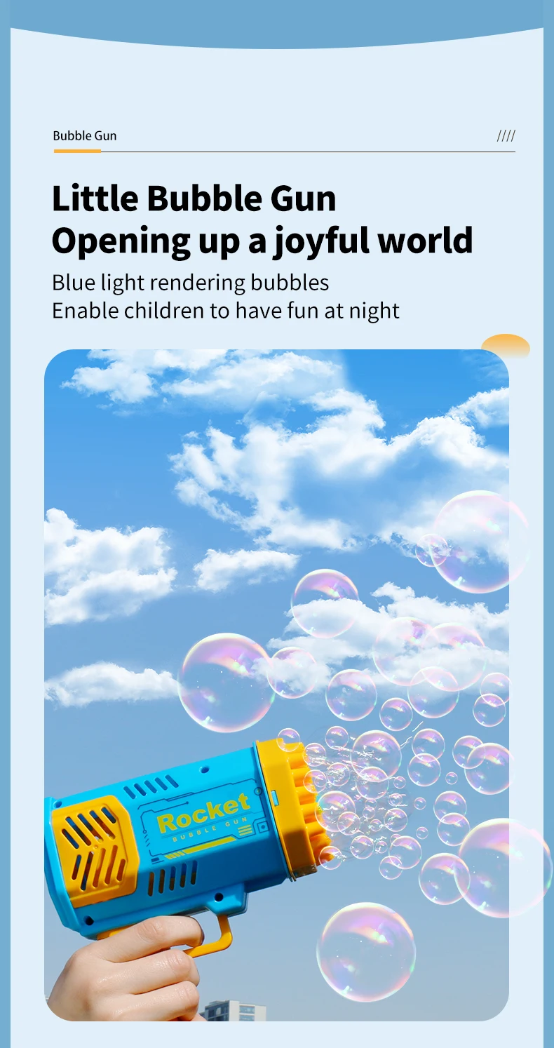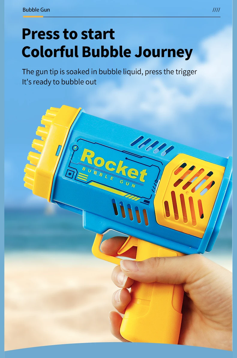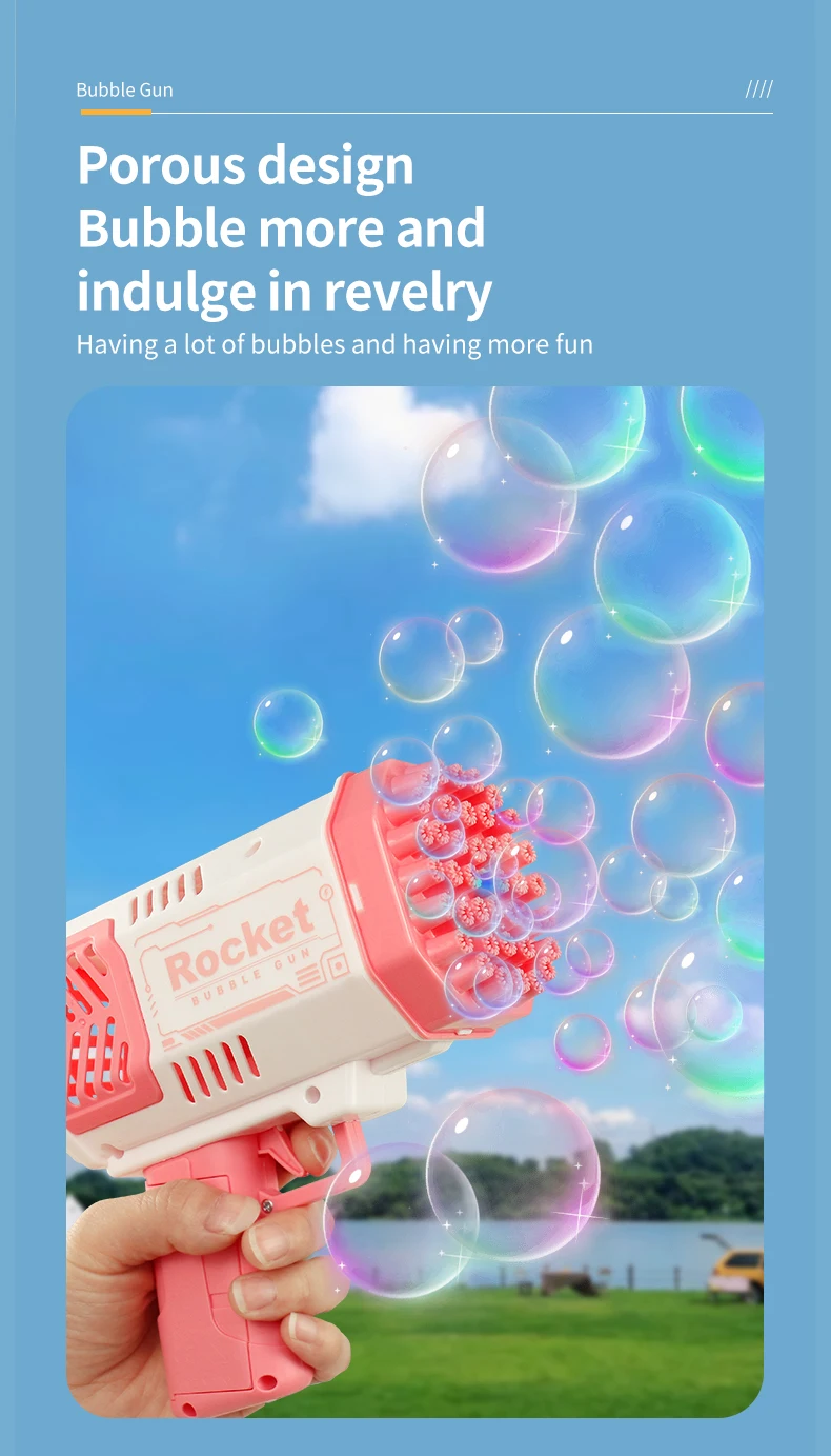 Make every party magical and exciting with the 40-Hole Rocket Launcher Bubble Gun Fully Automatic! This handheld, portable bubble blaster creates hundreds of bubbles per second, bringing joy and laughter to kids and adults alike. Perfect for birthdays, outdoor play, and party fun!